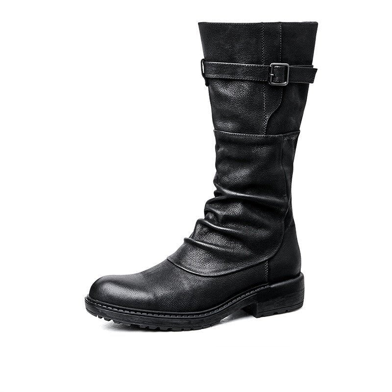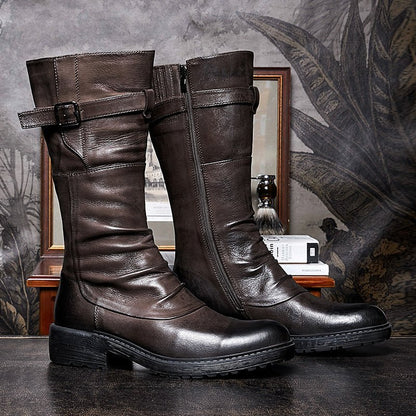 IronTrail High-Top Leather Motorcycle Boots by The Nevermore are a symbol of fearless exploration. Whether you're cruising down the highway or embracing a bold fashion statement, these boots elevate your style with a unique edge. Embrace the essence of Vortex, where each step becomes a statement of enduring comfort and a nod to the rebellious spirit of the open road for the contemporary man.