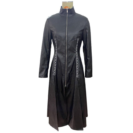 Vinny - The Nevermore Women's Long Leather Coat Jacket