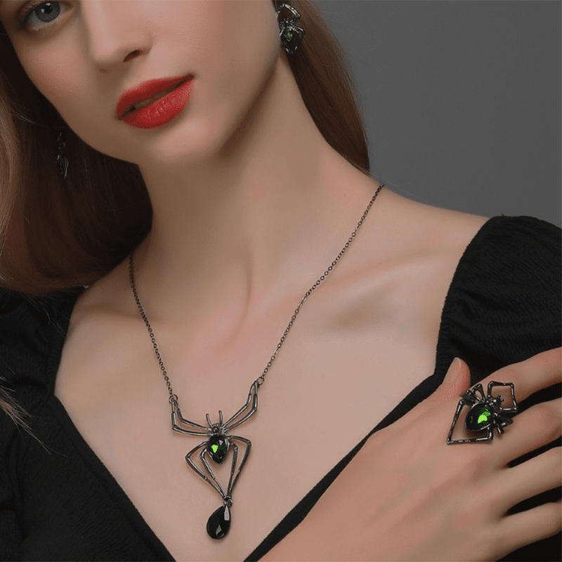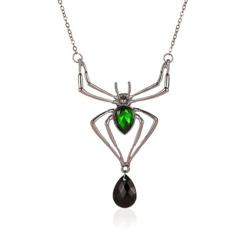 Unleash the mysterious charm of the Emerald Spider Toxin - Gothic Pendant Necklace by The Nevermore. This captivating piece draws inspiration from the venomous allure of spiders, blending sinister beauty with gothic elegance.