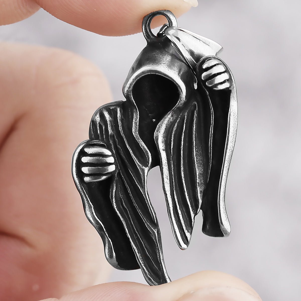 Made from high-quality stainless steel, the Hour of Demise Pendant boasts a geometric, minimalist style that blends seamlessly with gothic fashion. Whether worn as a statement piece or layered for a bold aesthetic, this necklace embodies the power of contemplation and the beauty of the unknown.