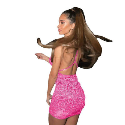 Shimmer with elegance and confidence in the LustraGlow dress—crafted from radiant bright silk, this stunning low-cut suspender piece is perfect for glamorous evenings, upscale parties, and nights of enchantment. With its flattering lace-up back and figure-enhancing silhouette, this solid-color mini dress offers both allure and sophistication. Whether in champagne gold, silver, or sultry purple, it’s the show-stopping addition your wardrobe has been waiting for.