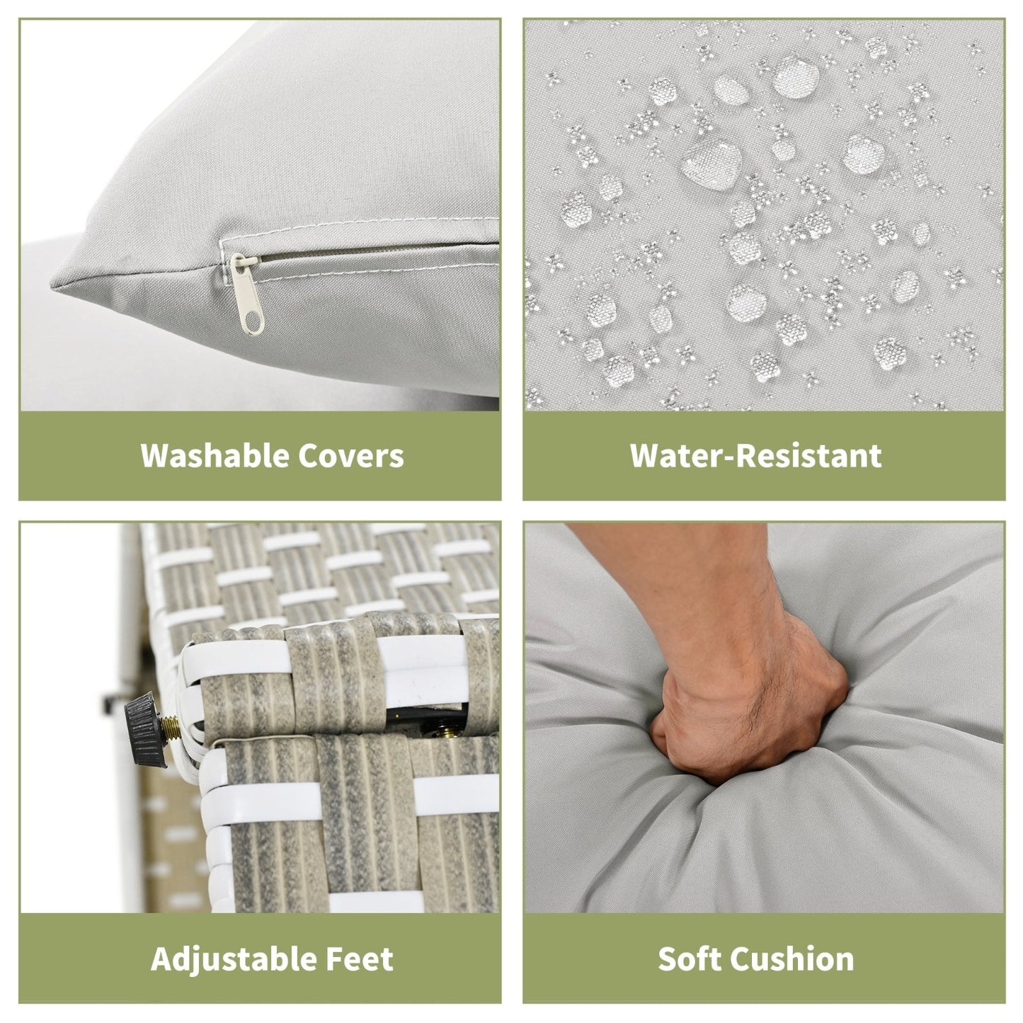 - [Functional Elegance with an Adjustable Table] At the heart of this daybed is an adjustable table that can be raised or lowered to suit your needs, whether it's serving snacks, holding drinks, or supporting a good book. This functionality is enhanced by a cushion that can be added to convert the table into additional seating. The washable covers and buttoned cushions ensure that your daybed remains pristine, making maintenance effortless and keeping your outdoor space elegant and inviting.