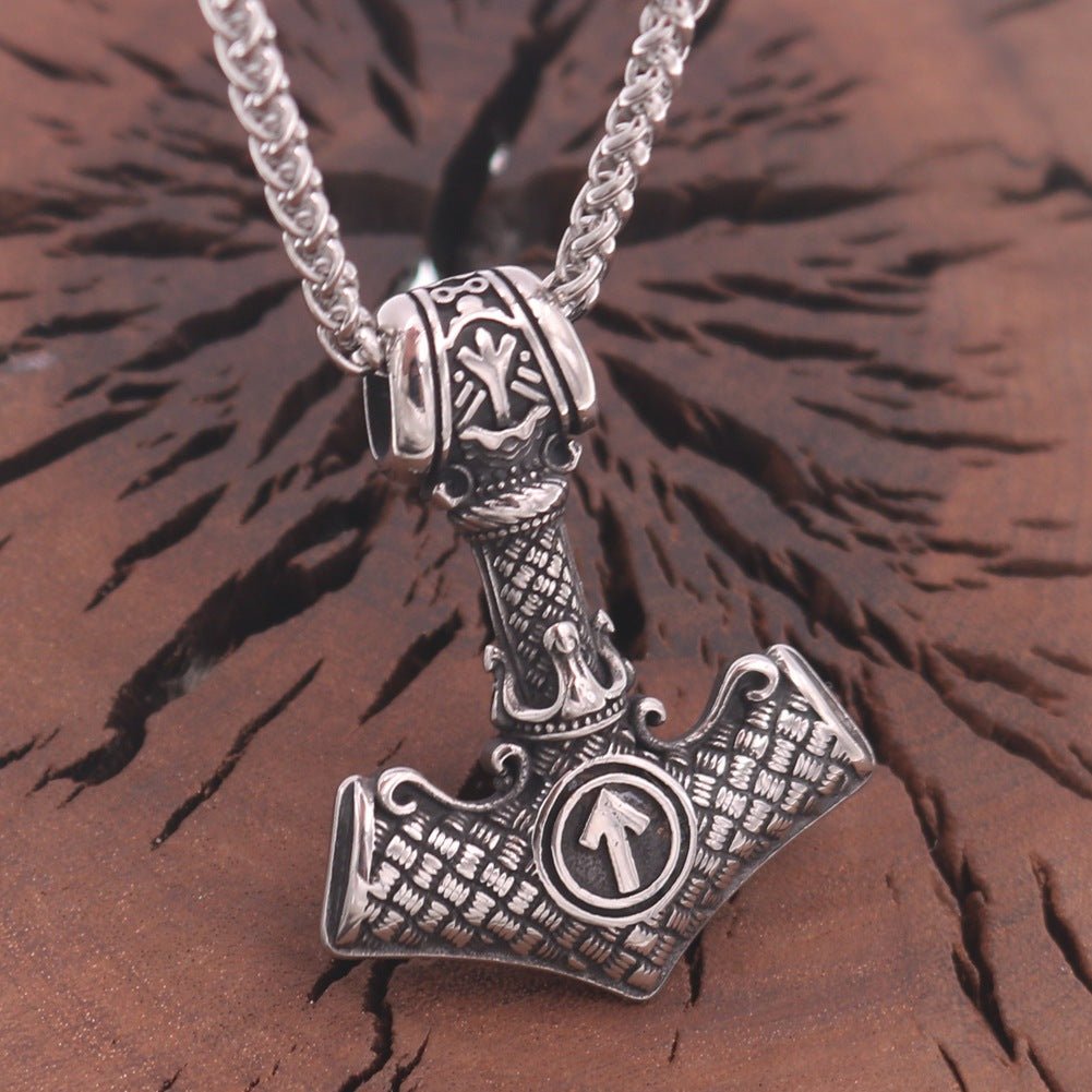 - Design: Mjolnir-inspired pendant with gothic elements.