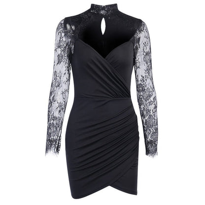 Turn heads in the Fae Nightfall Gothic Dress, designed with sexy lace stitching and a flattering V-neck for a slim, elegant silhouette. Crafted from premium polyester and spandex, this short, single-piece dress features a round neck, mesh long sleeves, and an elastic waist, perfect for night outs, parties, or special gothic occasions.