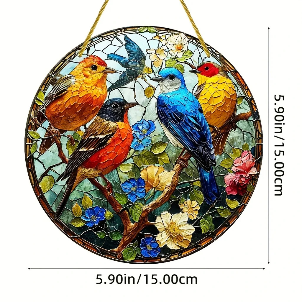 Elevate your space with the radiant charm of the ColorBloom Flight, a stunning acrylic suncatcher that captures light and imagination. Crafted in a circular design, this modern art wall pendant features vivid color discs printed with elegant bird motifs. As sunlight streams through, it casts luminous reflections, transforming any room into a dreamy, nature-inspired sanctuary. Ideal for window spaces, artistic corners, or boho interiors, it's both a statement and a soothing visual experience.